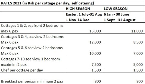 This property is made up of 10 self catering cottages of a basic design, however they are very clean, well kept, right on the white sandy beach of Galu and affordable if your pocket is light!