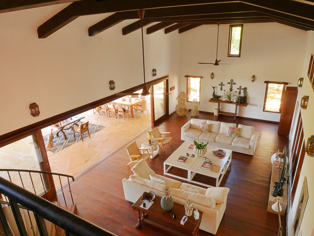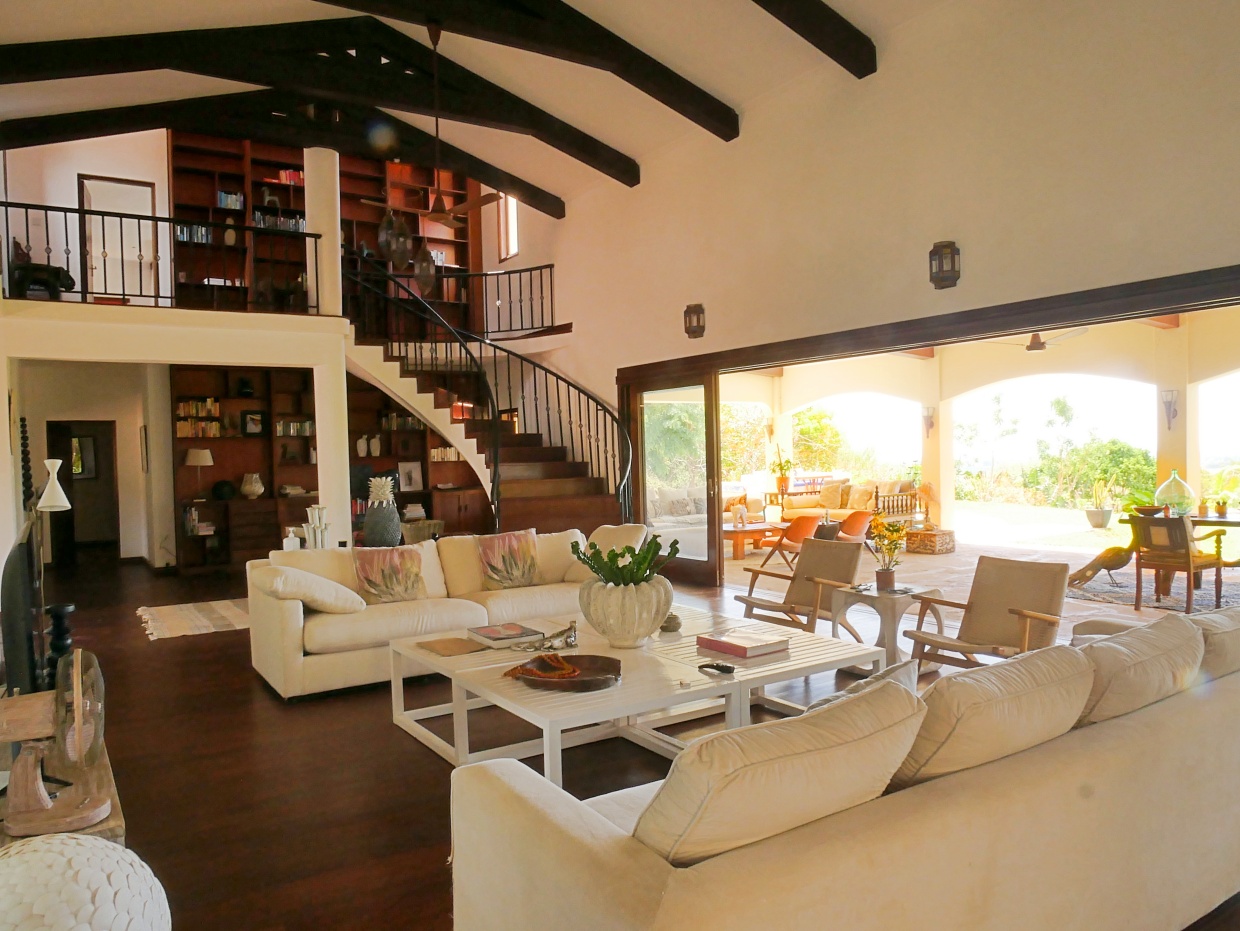 Spectacular living area with extra high vaulted ceilings giving the house that grandiose and airy feeling together with sliding doors opening out onto the verandah to create an extra large indoor/outdoor living space. Views over the Indian Ocean are a never ending artist’s palette with different colours and visibility throughout the day/year. Watching the sunrise over a stunning vista every morning is very special.