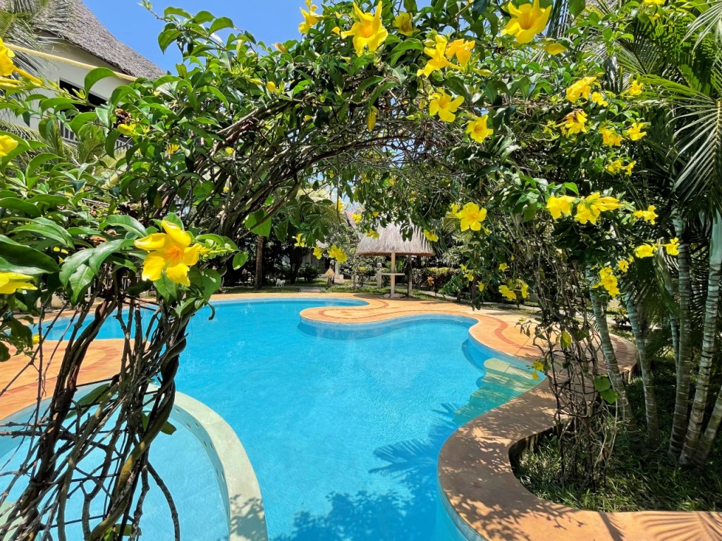Spacious, airy, modern Swahili style apartments, surrounding a central pool with landscaped gardens. Situated in central Diani on 2nd row, walking distance to the beach, shops, bars and restaurants, this is an ideal purchase for those looking for a rental business.