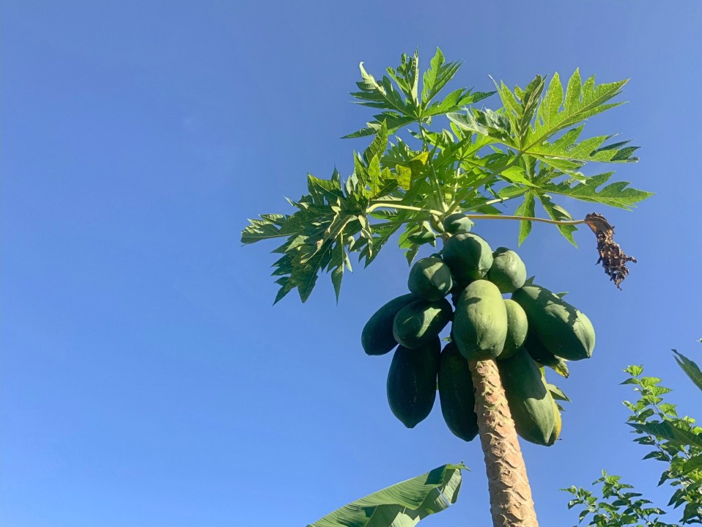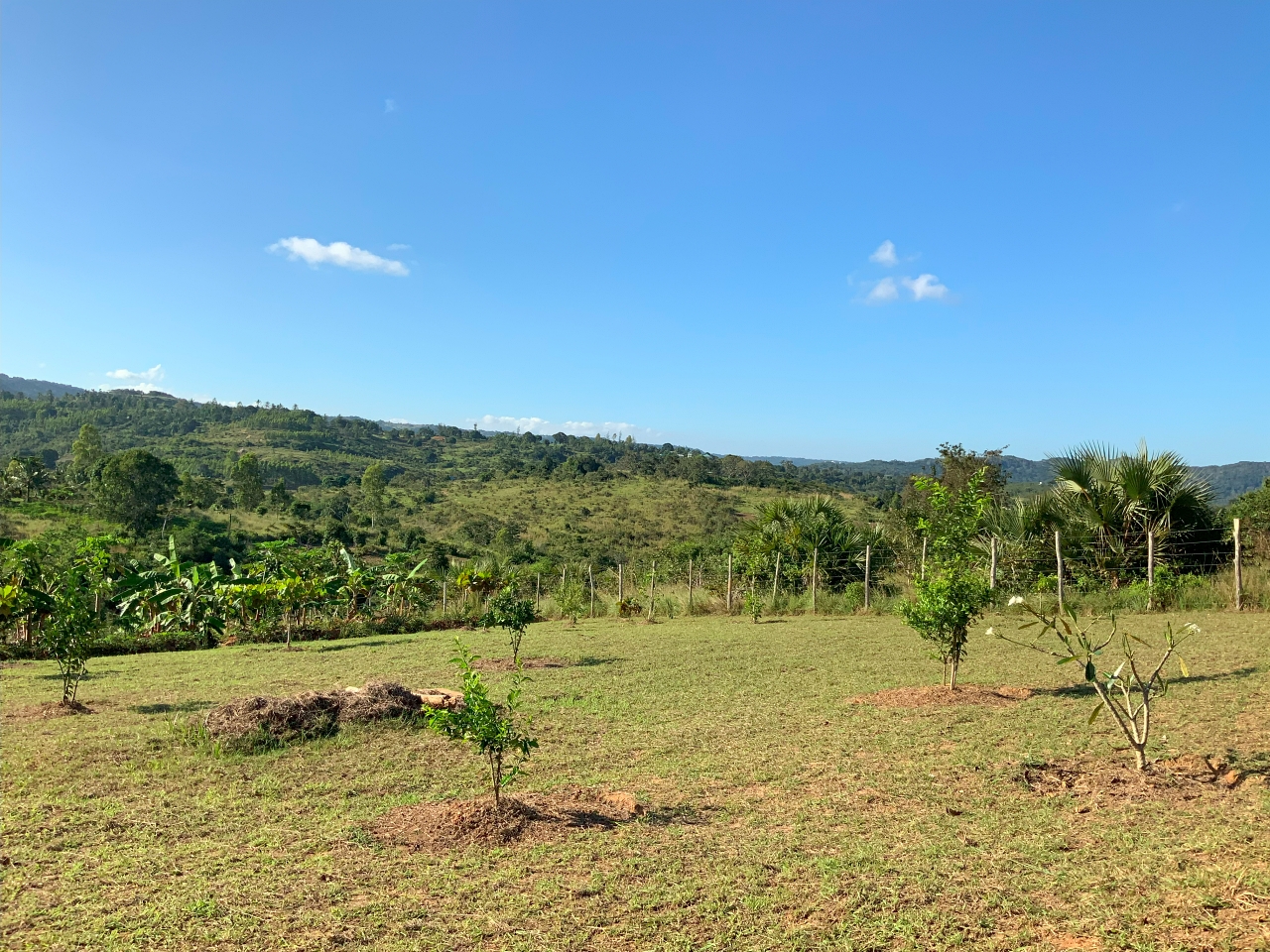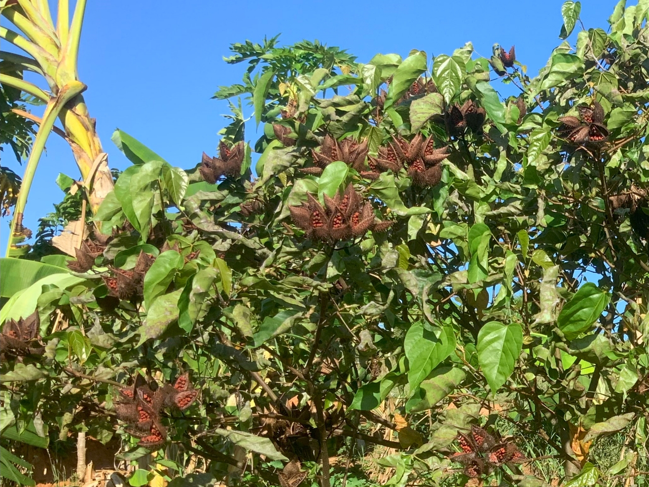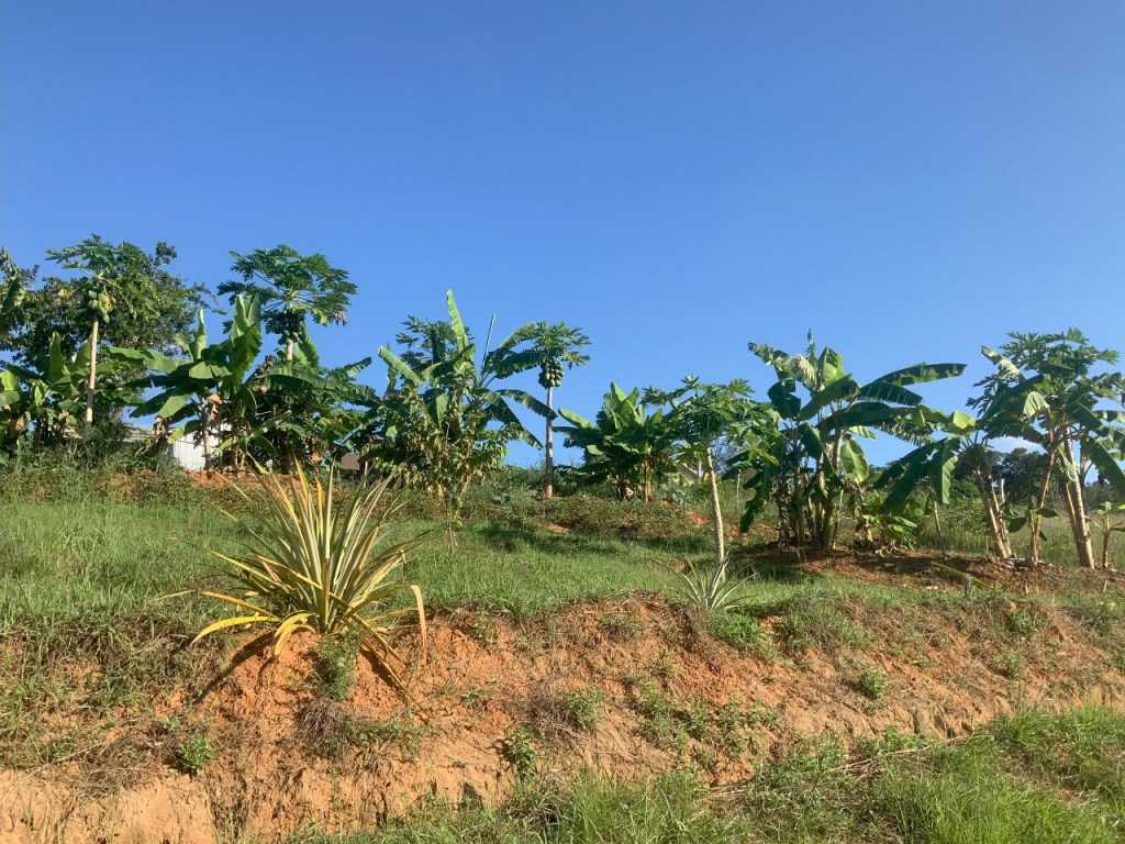 Good soil for farming such as: Orange trees, passion, bixa, pineapples, cherry tomatos, bananas, paw paws, corn. Banana circles have been intercropped with bananas and papaya. Grafted mango trees, grafted cashew trees, coconut trees, mulberry bushes, grafted oranges and lime trees, pineapples, guavas, passion fruits and sour sop (Tomoko). 30 Neem trees were planted in 2023.