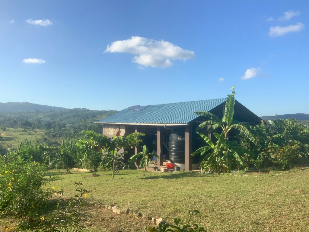 There are various buildings, plenty of water storage and the land has been cultivated with various fruits and vegetables.
