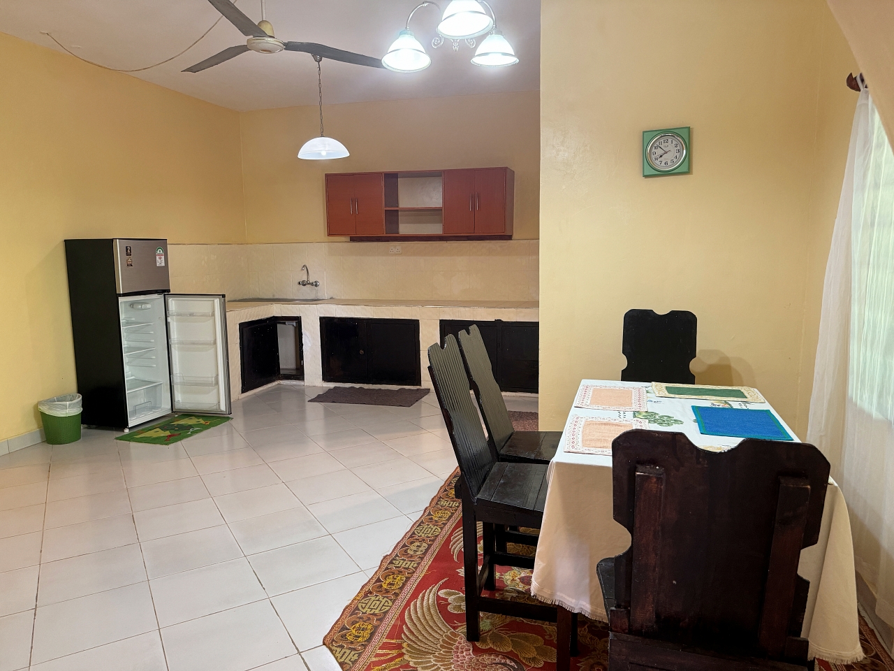 - smaller kitchen area for washing up and dhobie