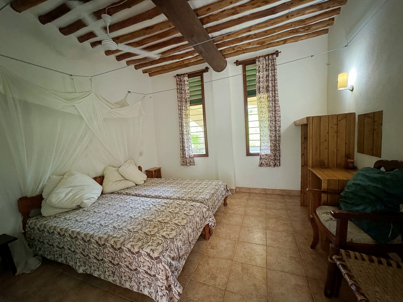 Utilities: KPLC mains power. Water is from the Kwale mains supply with a 2,000 litre water storage tank and 2 smaller ones on the top of either side of the house. There is another underground tank but it needs fixing.