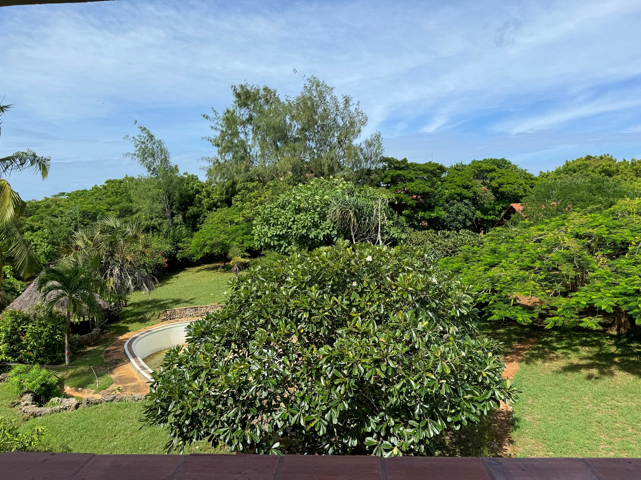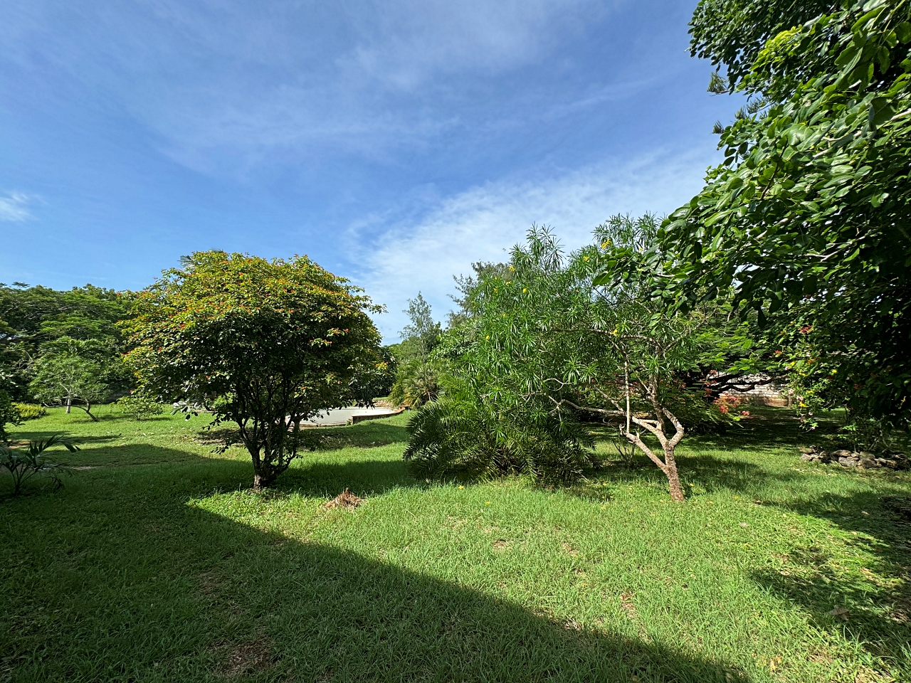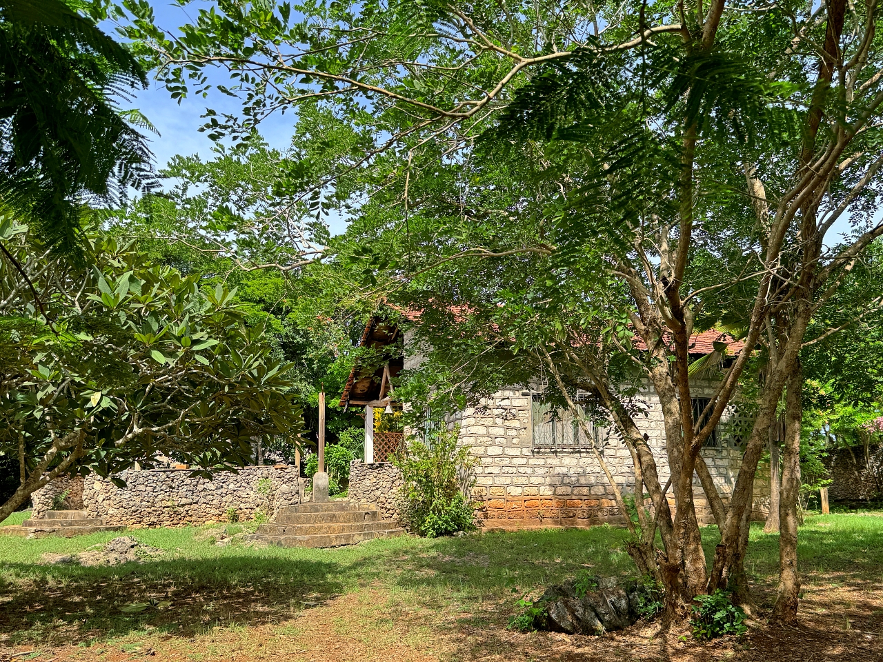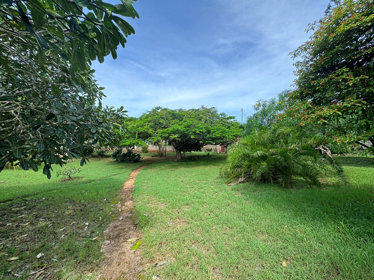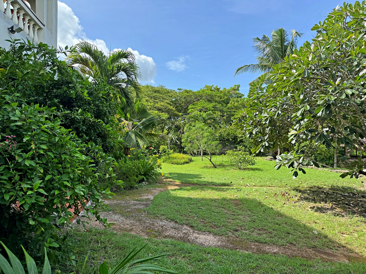 The plot is a rectangular shaped, relatively level plot on coral. Boundary walls on 3 sides and a fence on the eastern side which faces a development. The gardens have mature trees.