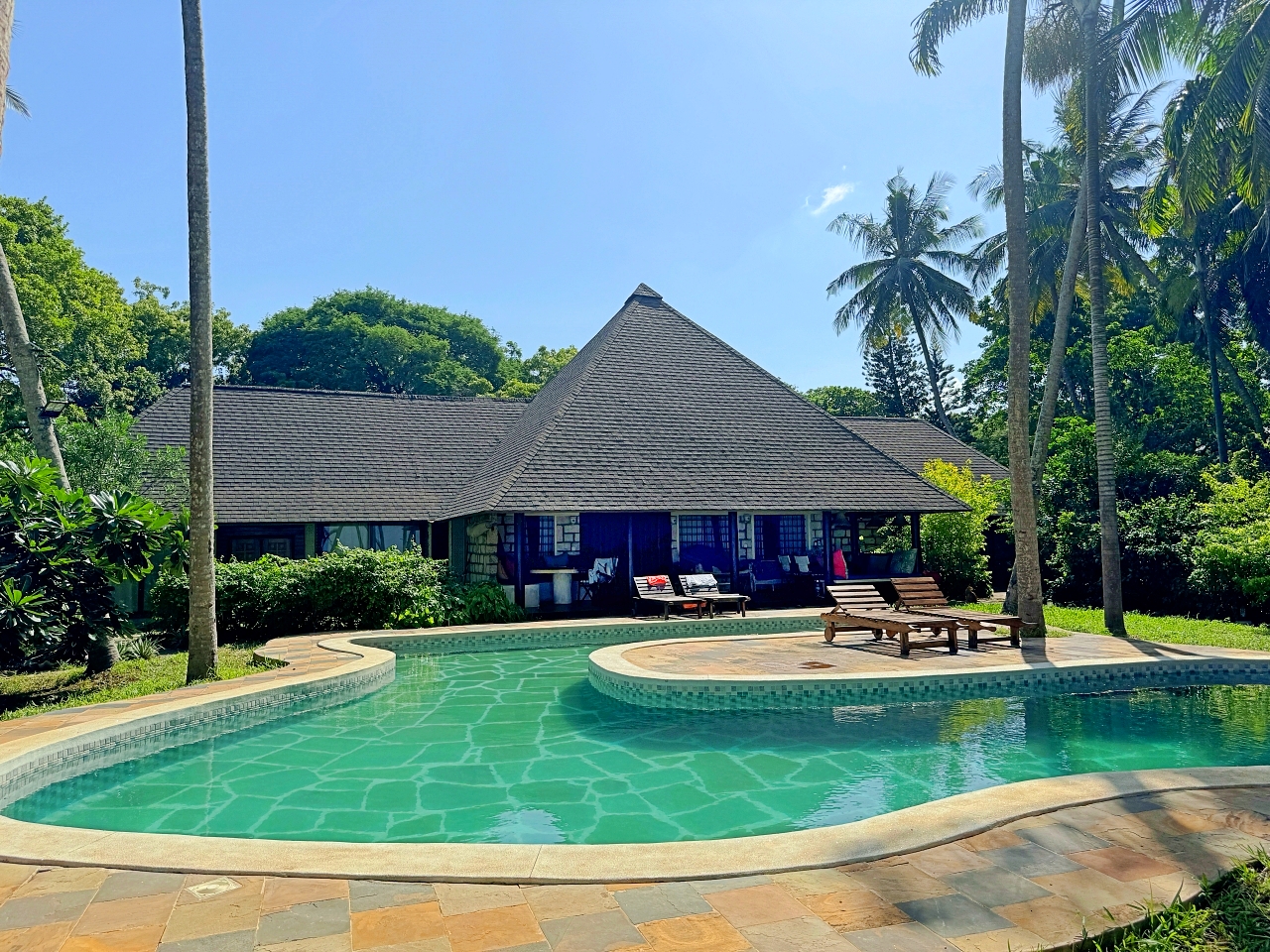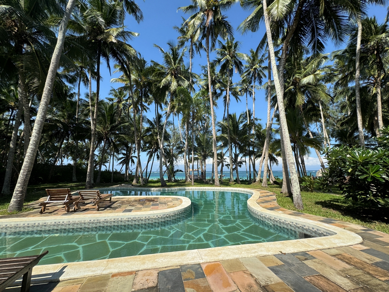- Large sitting room with verandah overlooking the large swimming pool and the beach.