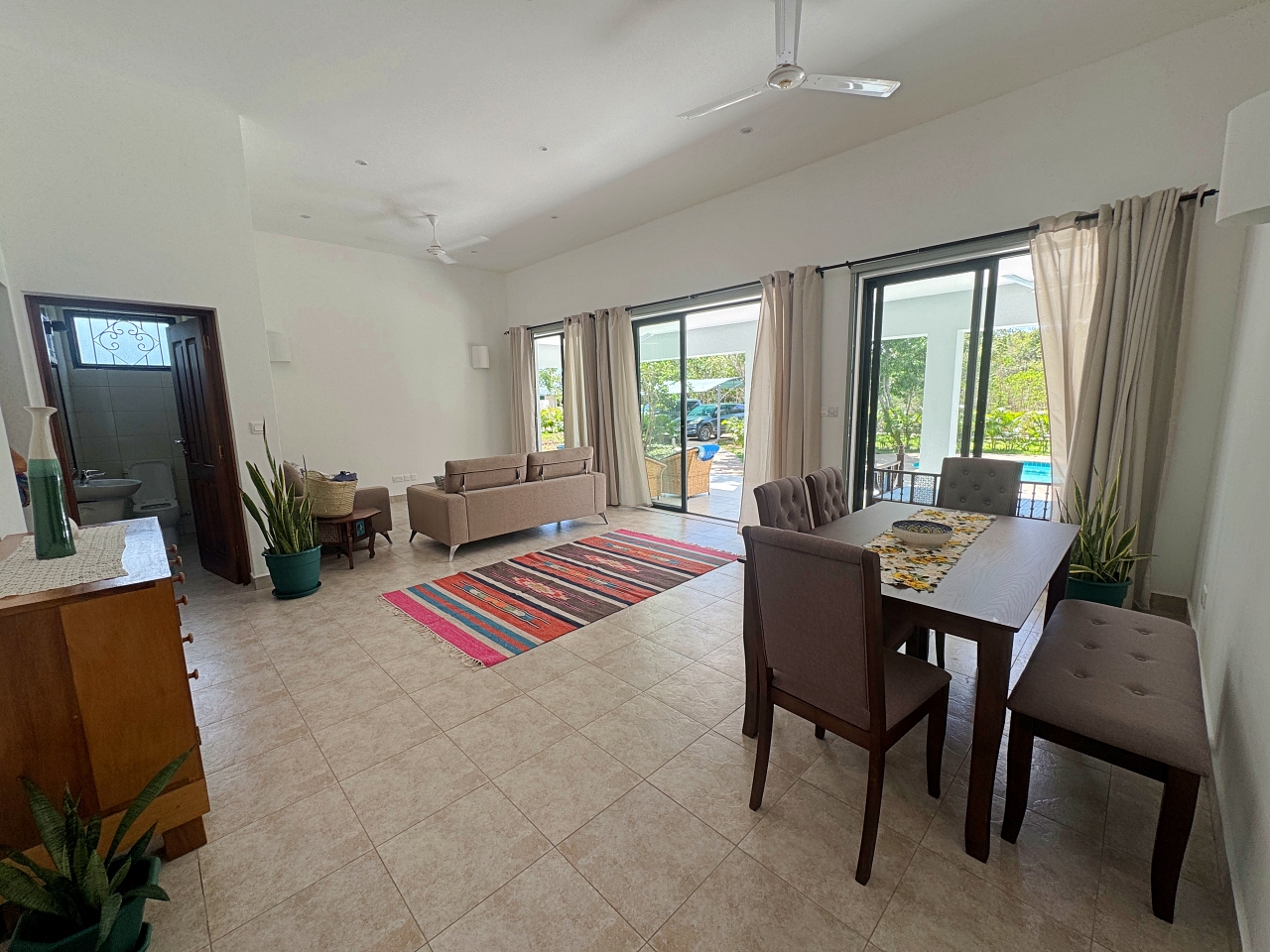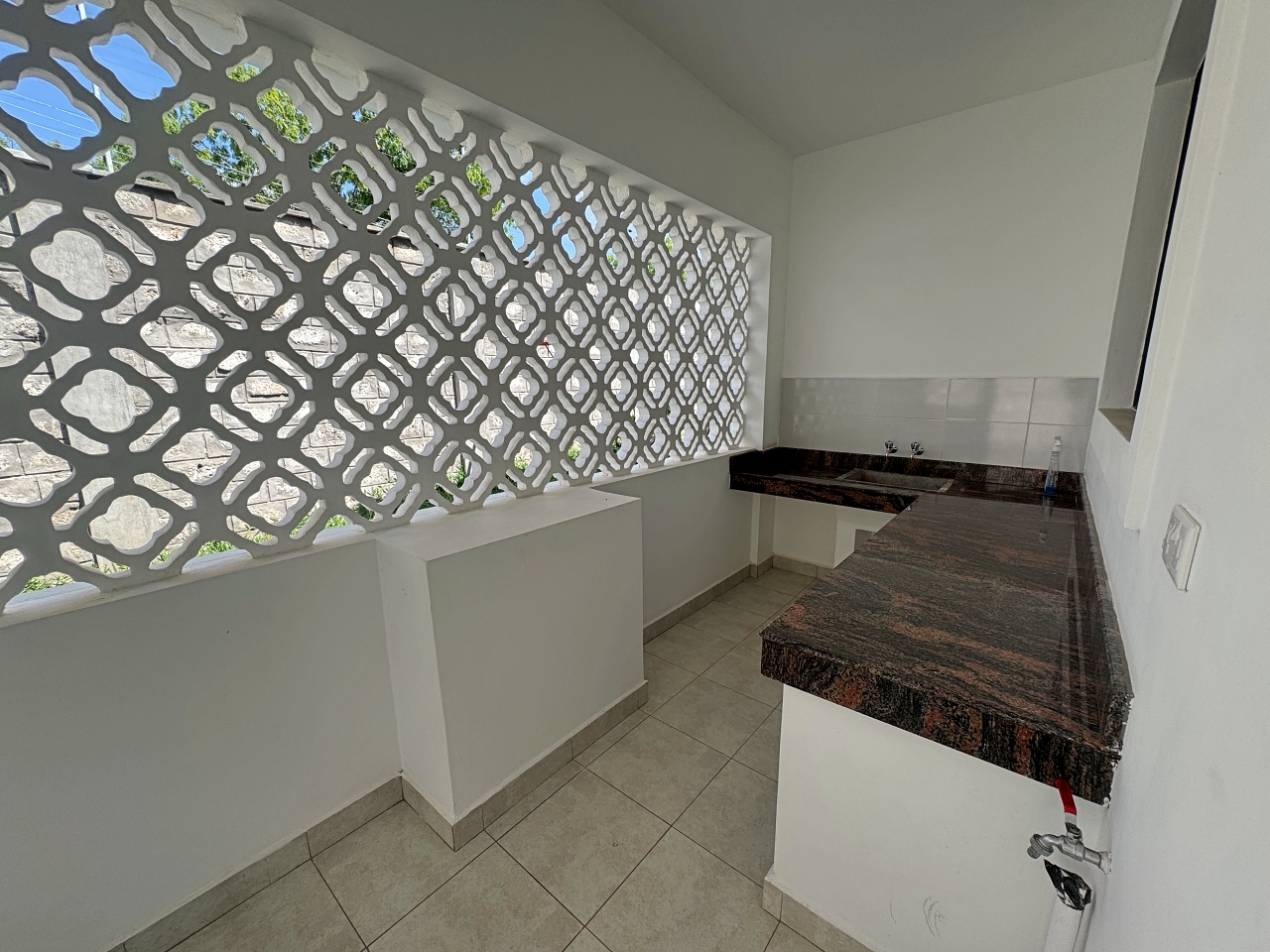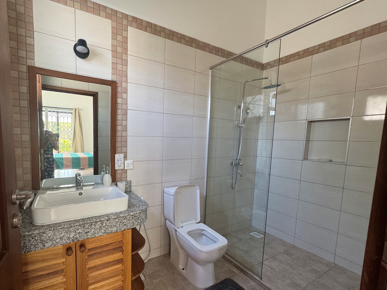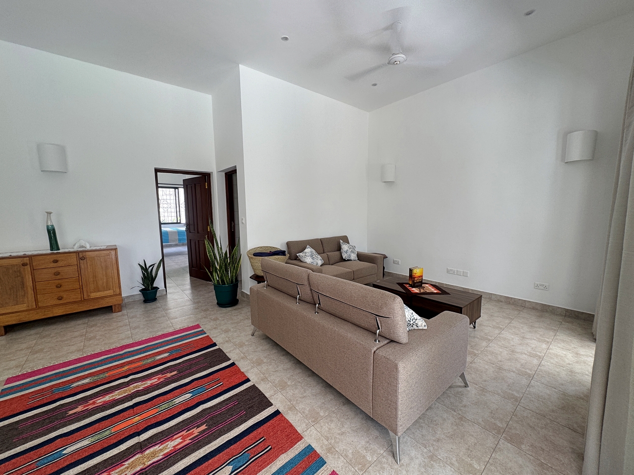 2 bedrooms en-suite, very large kitchen with pantry/store, dhobi room, large sitting/dining area, verandah overlooking the pool, rooftop terrace.