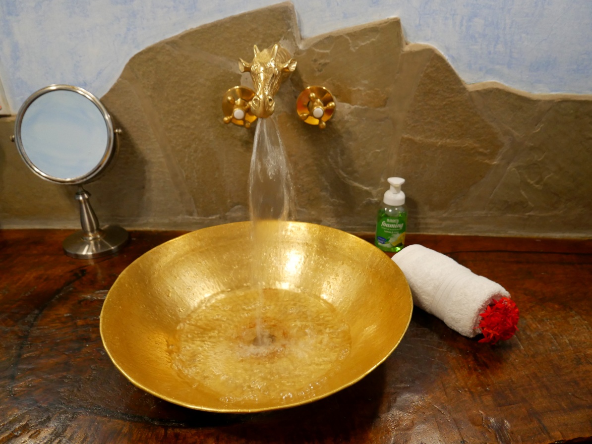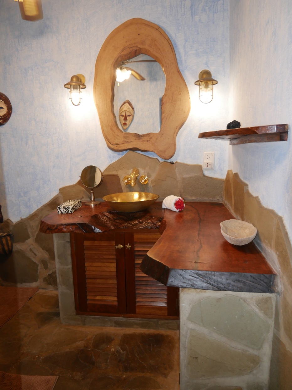 Many an hour was spent sourcing and furnishing this property with African artifacts and smaller details such as the wonderful brass coloured wash basins with a giraffe head faucet, carvings in the bed, kitchen cupboard handles, great African art. The house was built with great inspiration for the African style and much time and care was put into the purchase of all the finer details.