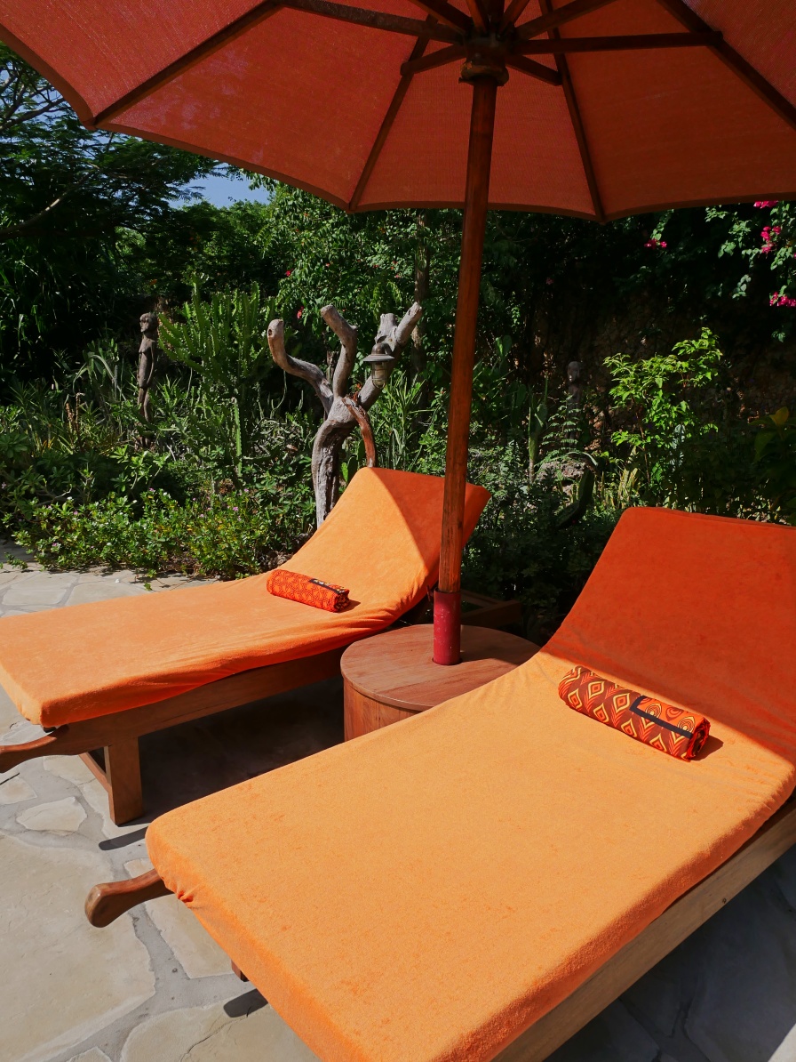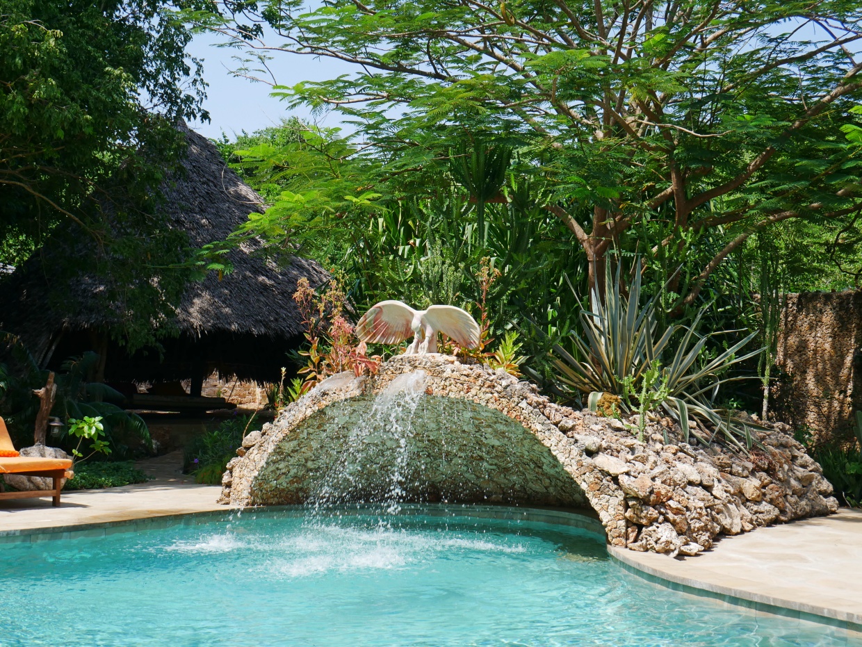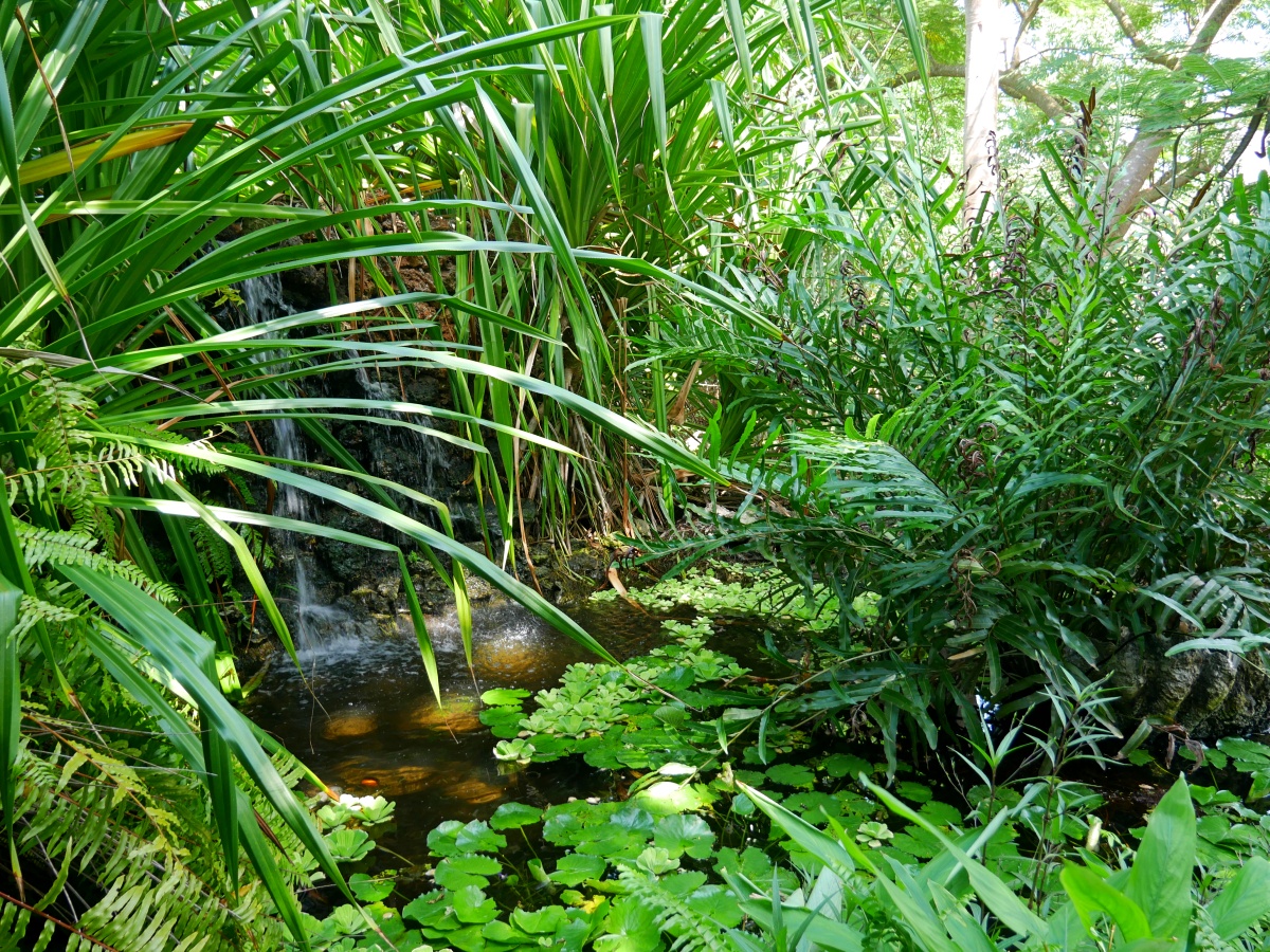 - Small pond with waterfall with a ‘quiet area’ and swinging bed nearby. Very relaxing and peaceful
