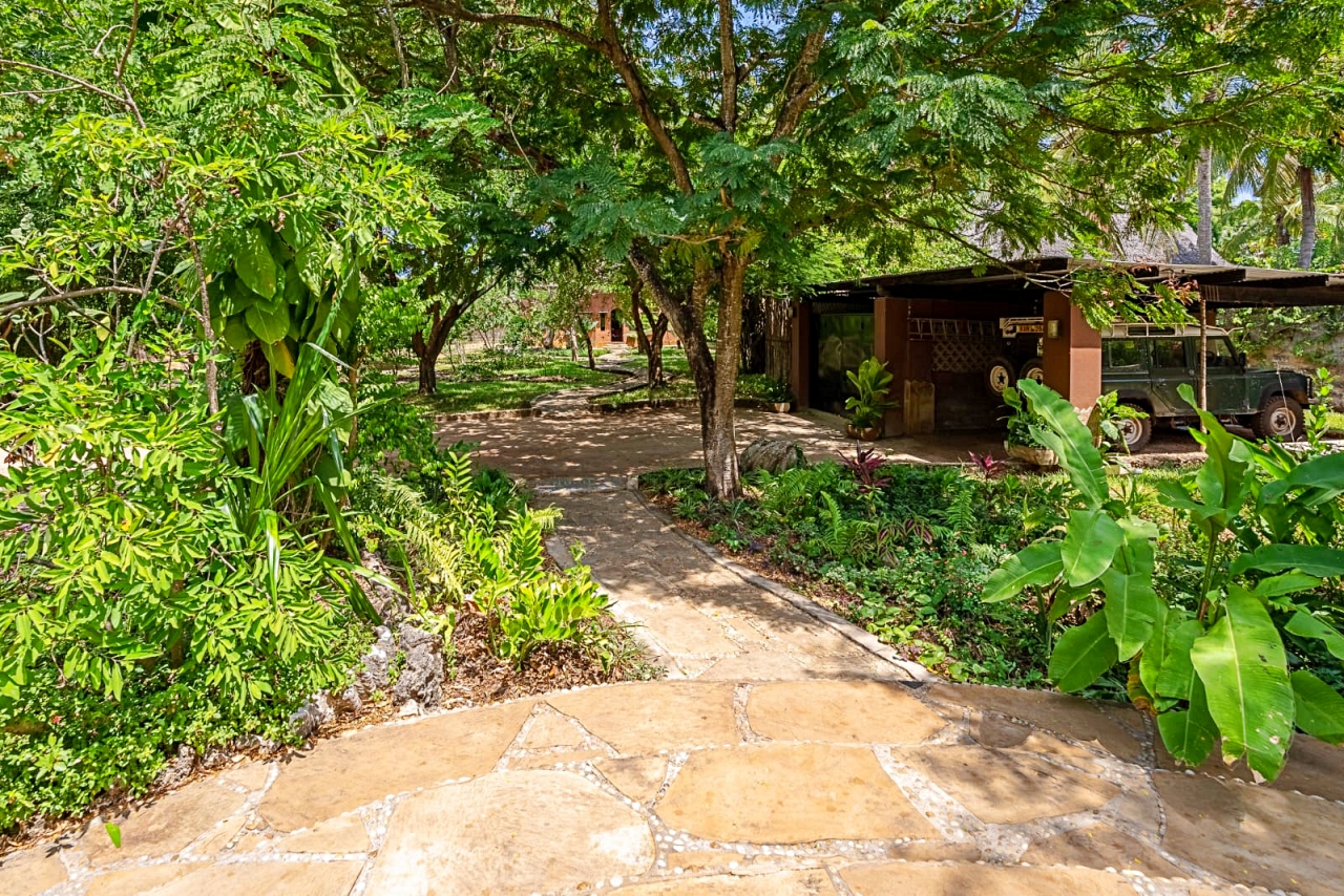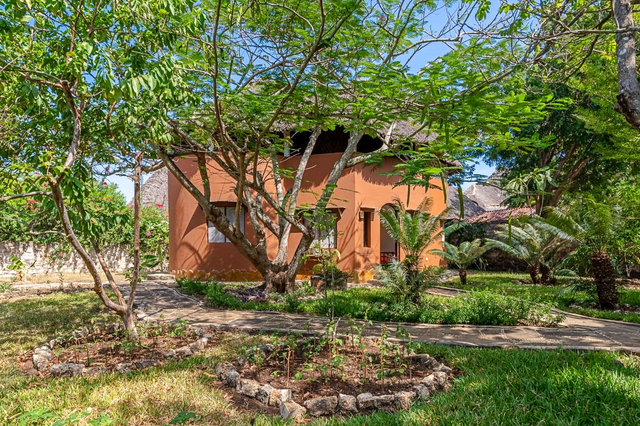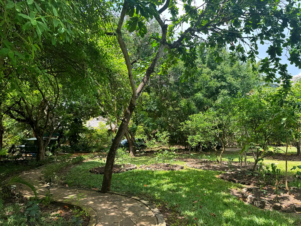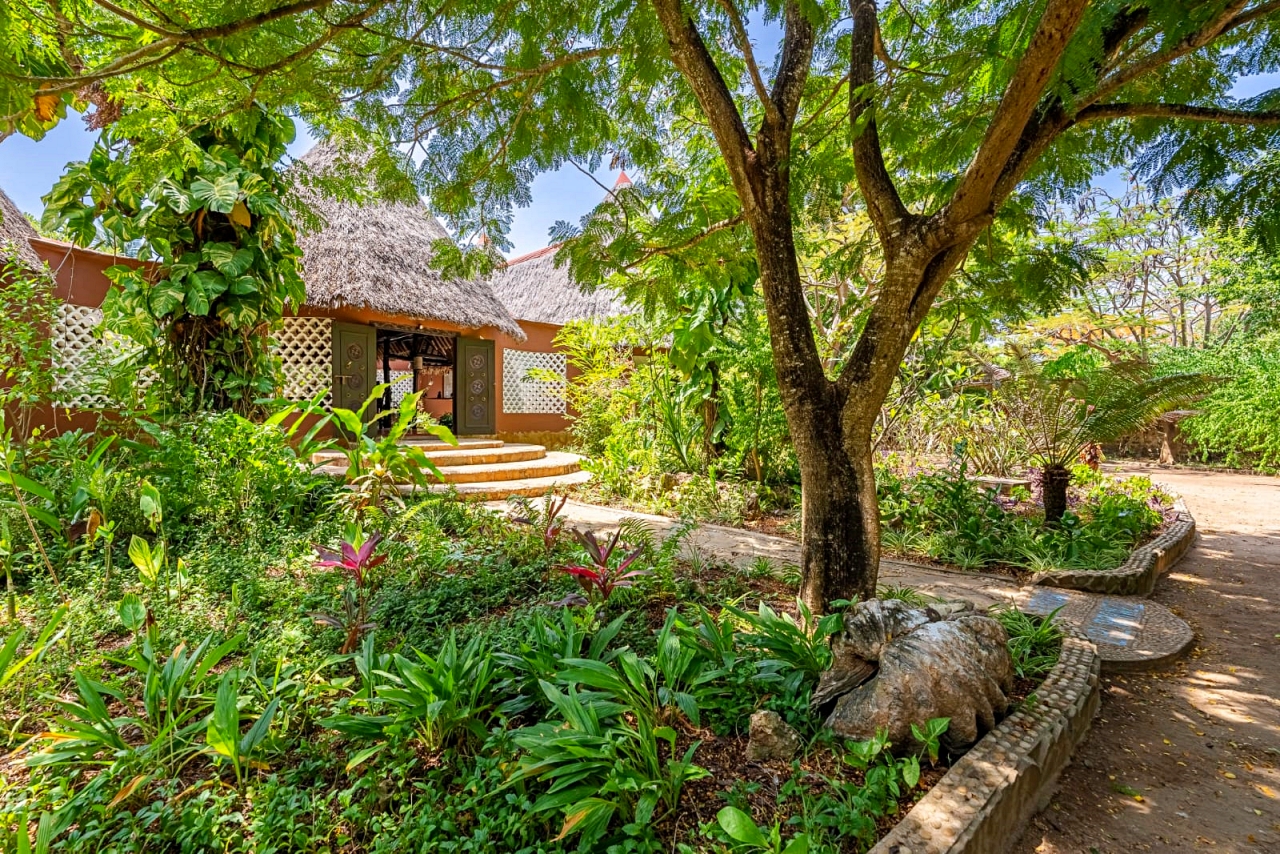 Gardens: The gardens are full of palm trees, citrus trees and a baobab tree as well as frangipani, coconut palms, figs and neem.
