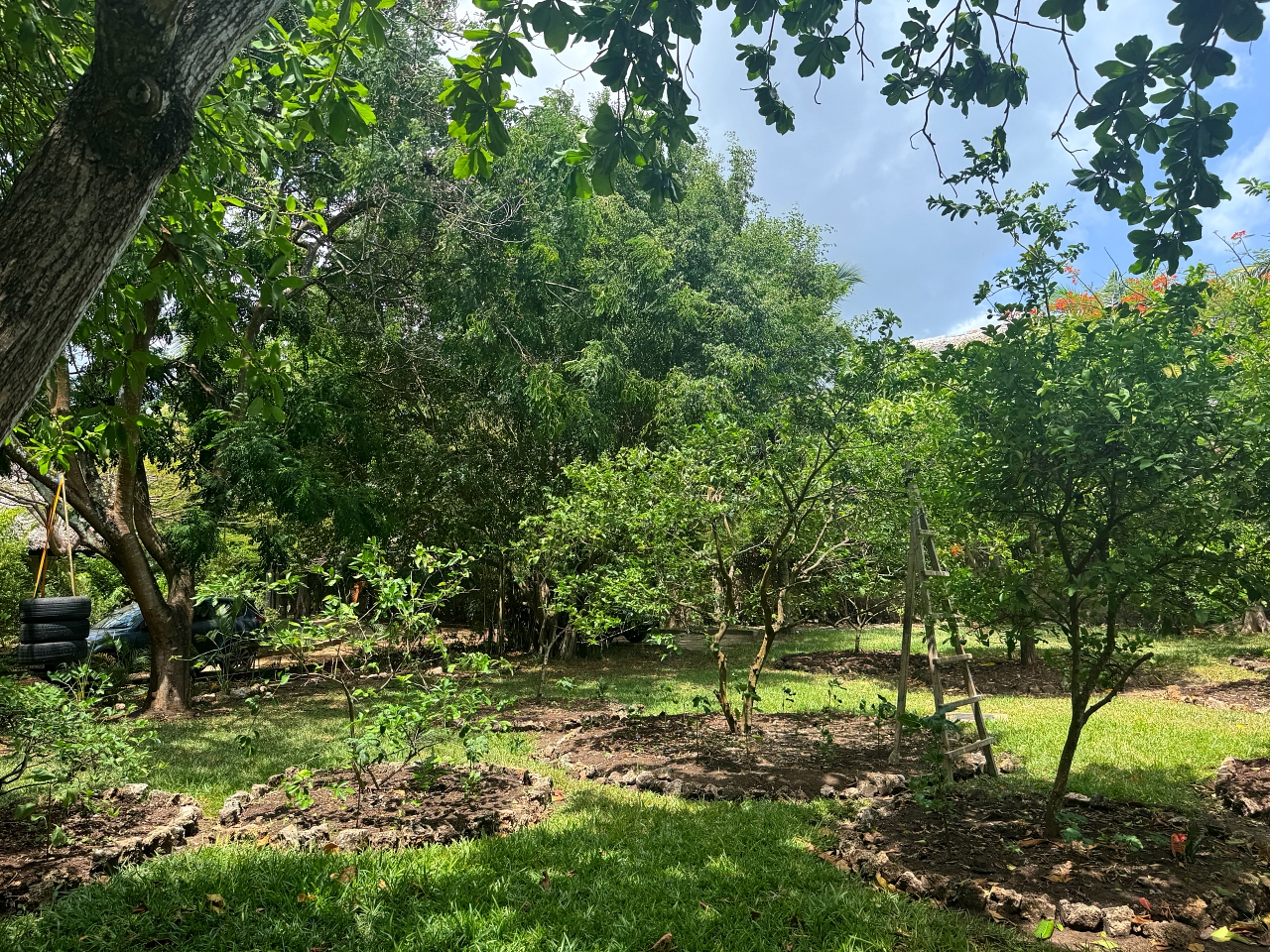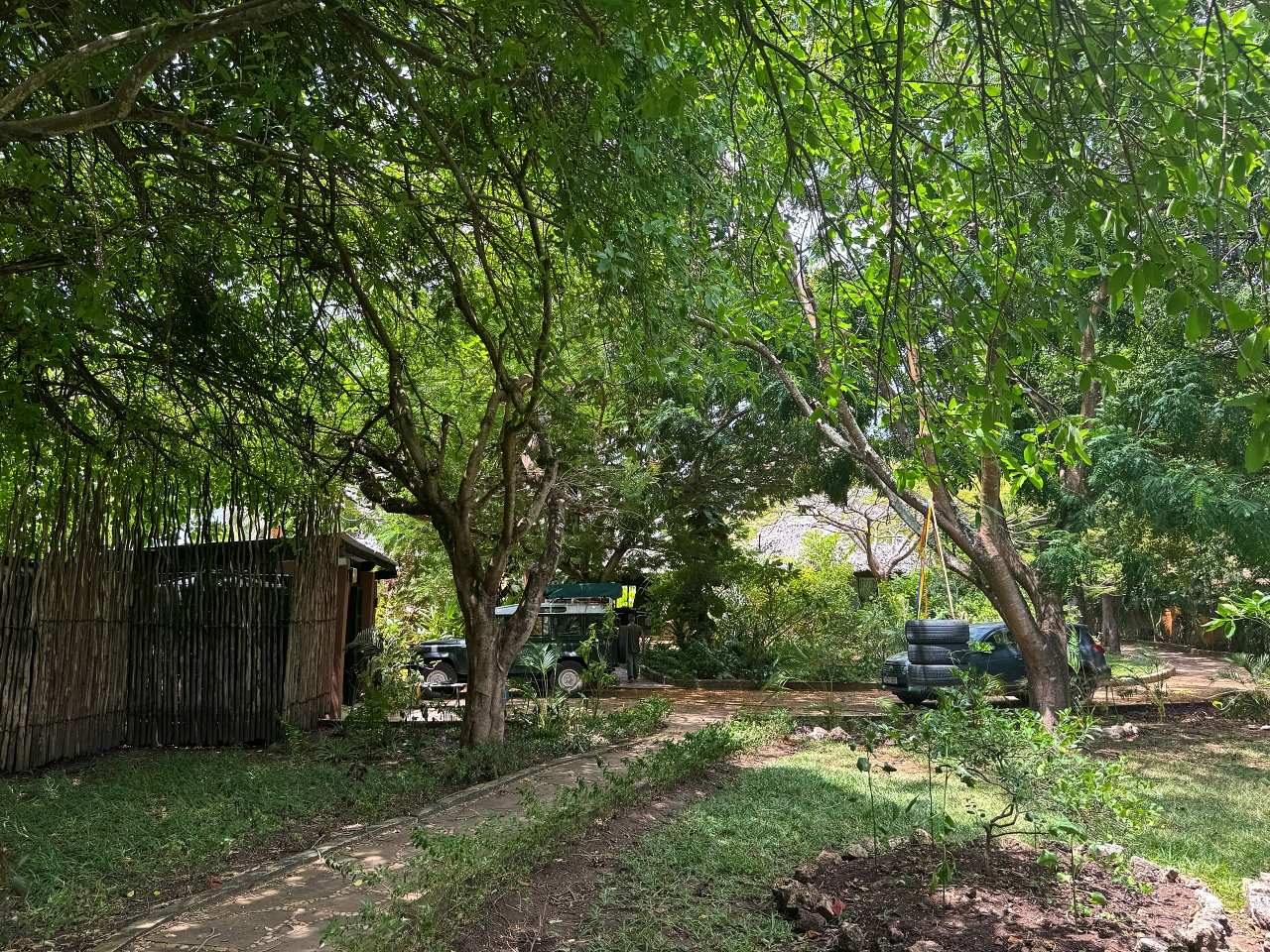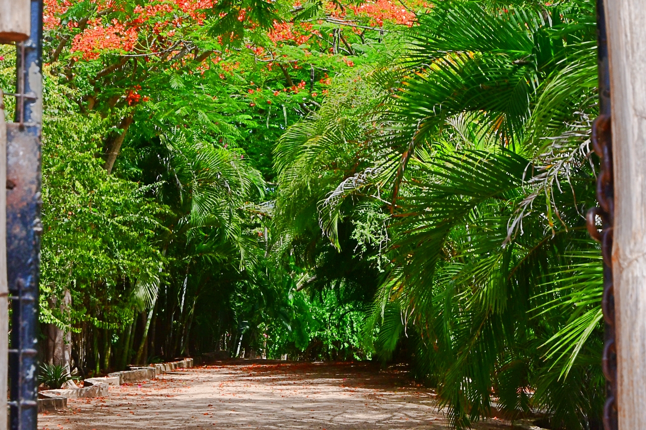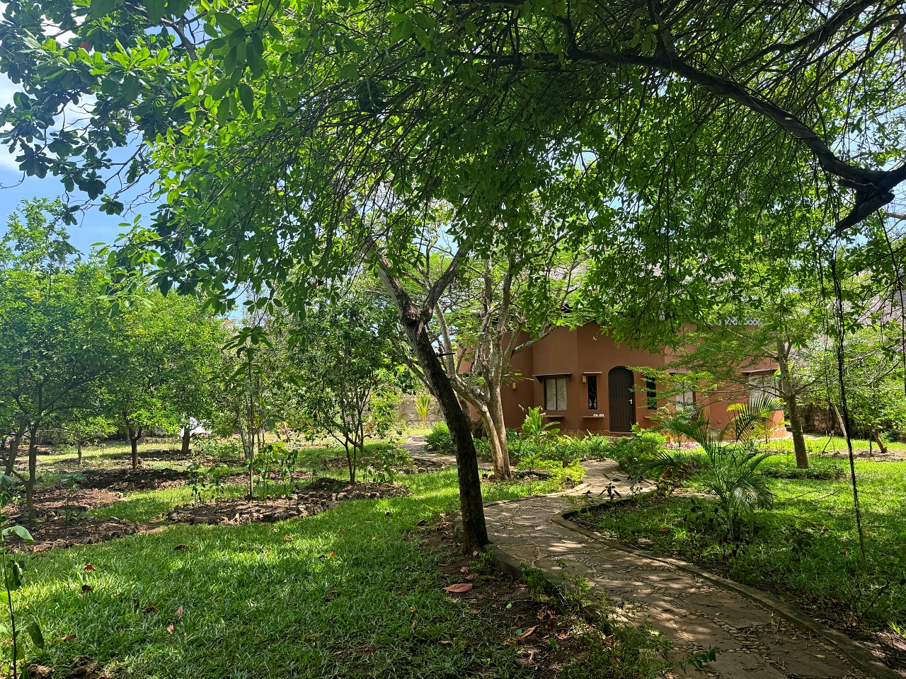 Gardens: The gardens are full of palm trees, citrus trees and a baobab tree as well as frangipani, coconut palms, figs and neem.