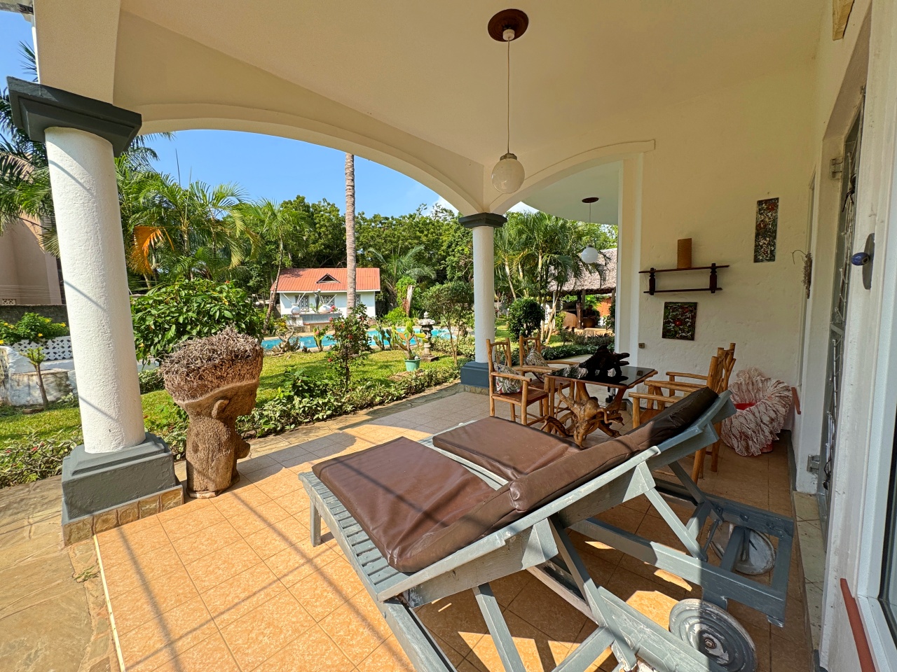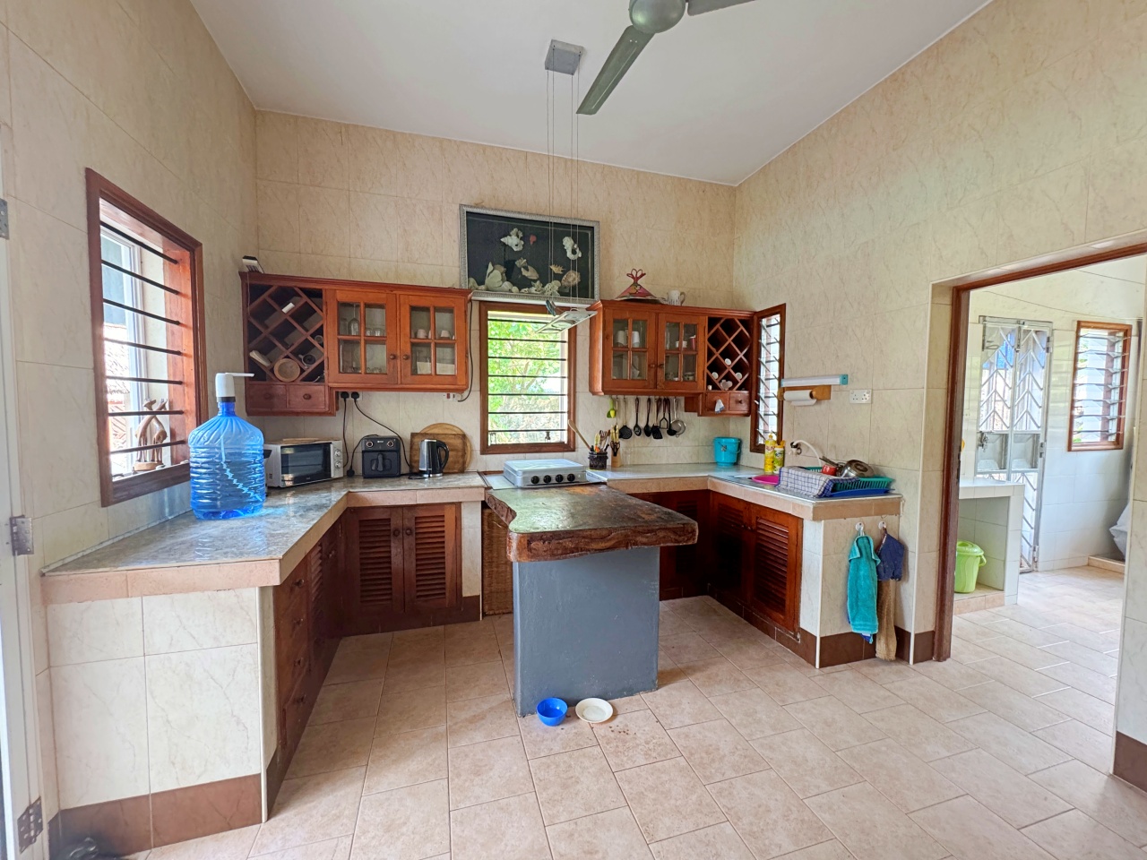 This charming 4-bedroom residence is set on a half-acre plot, just 670 meters from the beach with a potential shortcut via a nearby hotel. Positioned on the second row, the property offers an ideal balance of seclusion and coastal access. Tucked three plots away from the main road, it enjoys a peaceful, private setting. Designed with high ceilings and abundant natural light, the home stays refreshingly cool while embracing the airy ambiance of its surroundings.