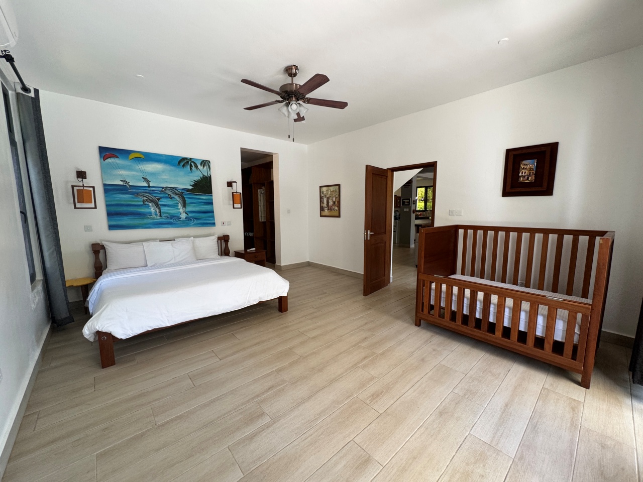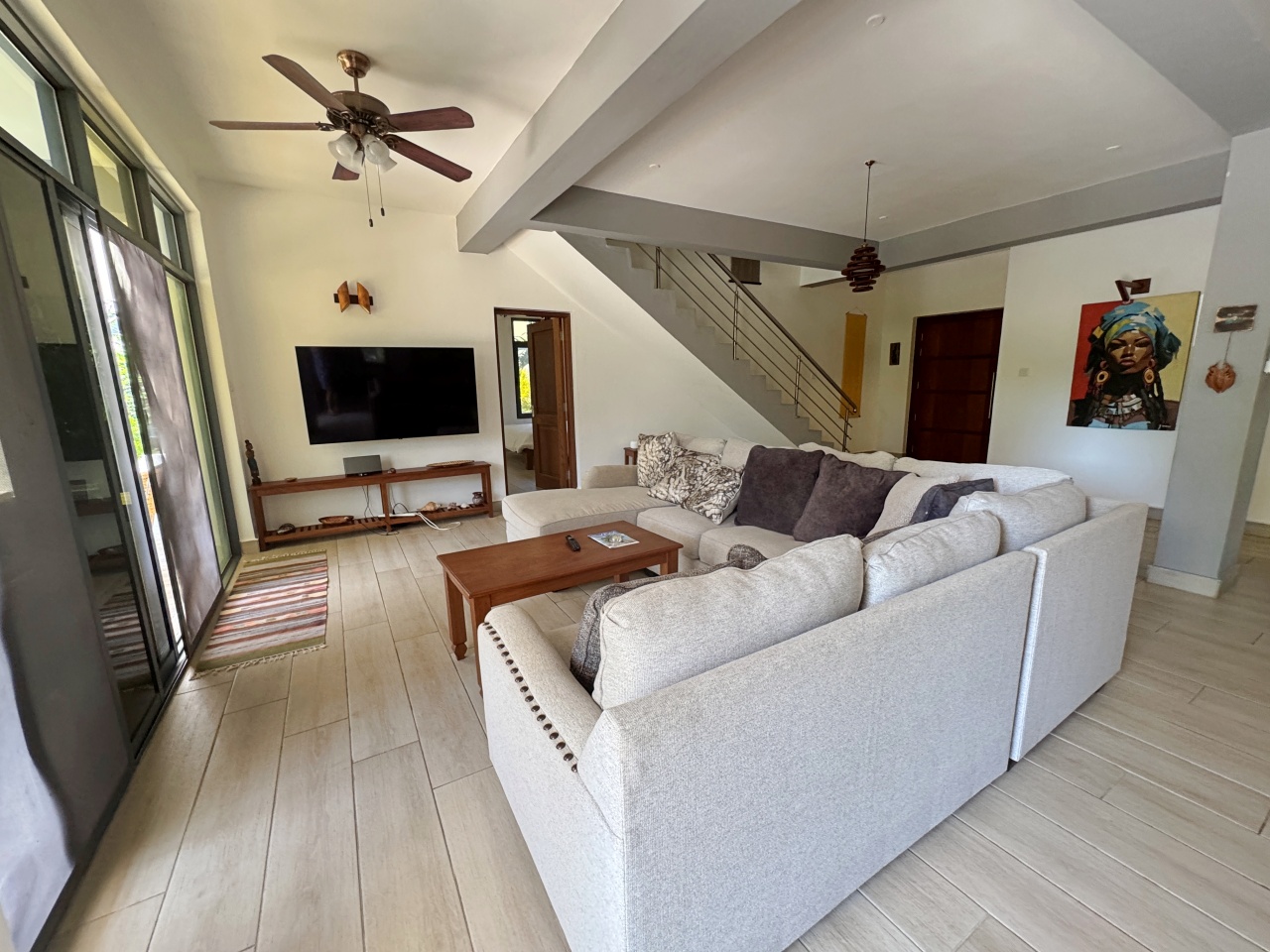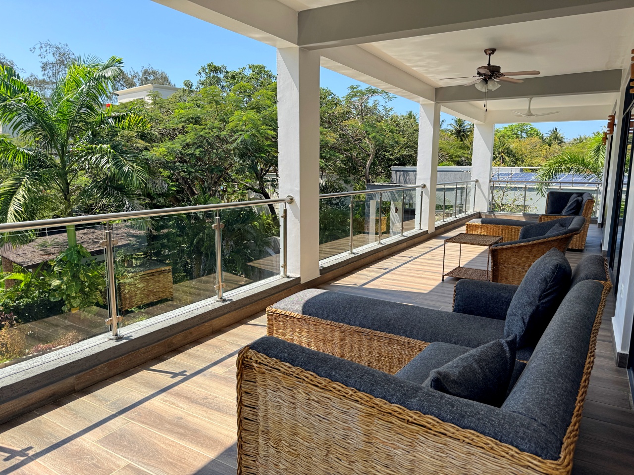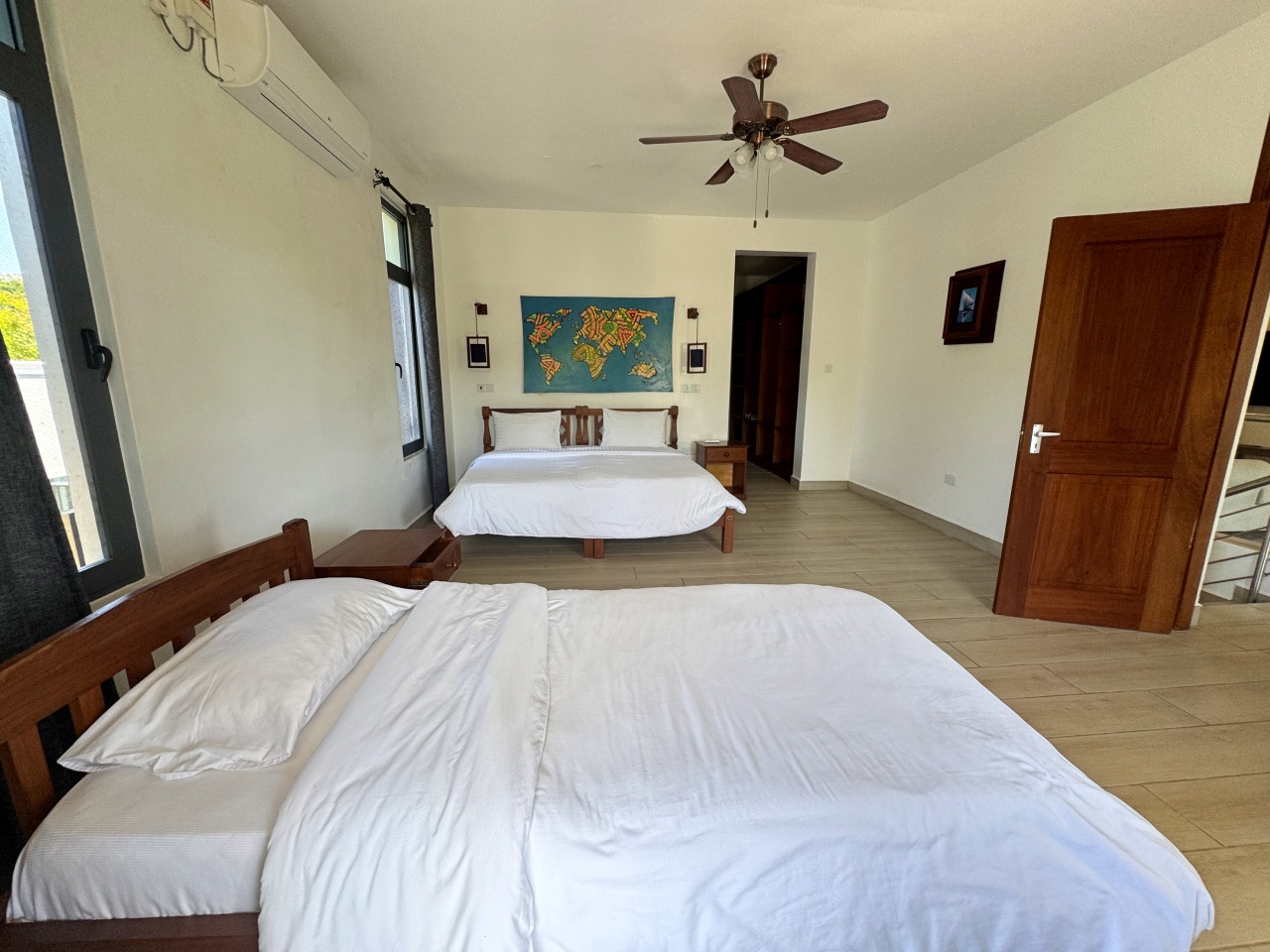Each bedroom has a walk-in wardrobe, ceiling fan and air-conditioning with one bedroom on the ground floor and 2 on the first floor. All indoor areas have ceiling fans.