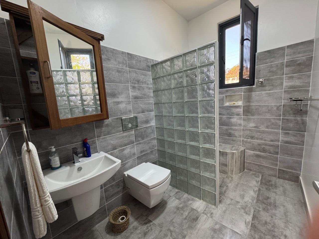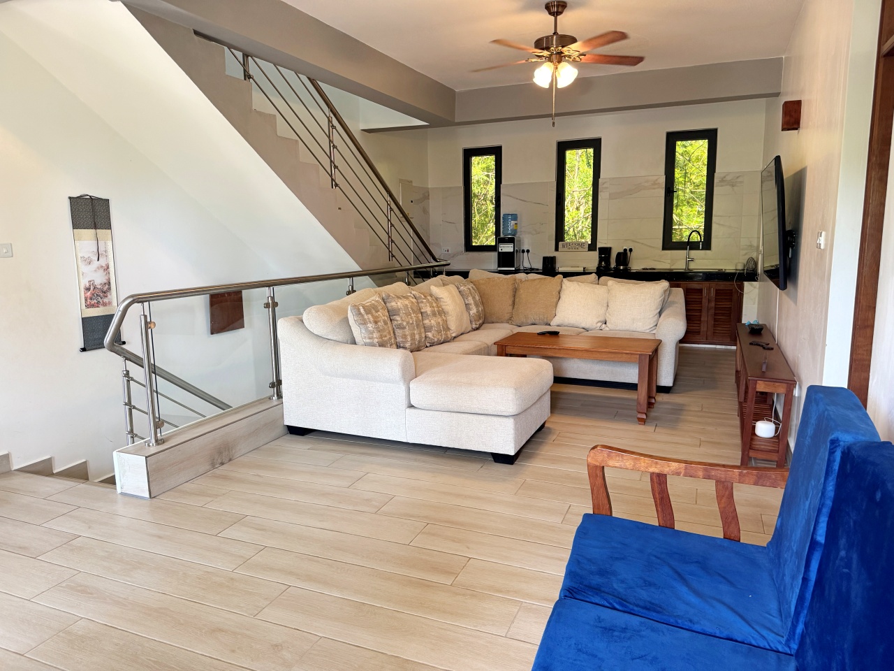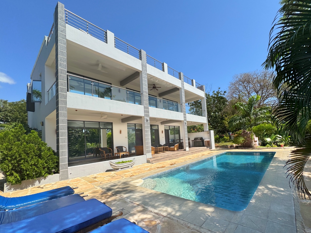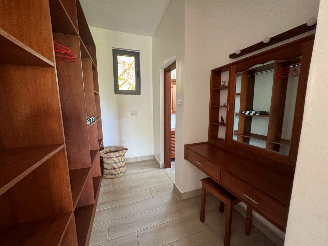 Each bedroom has a walk-in wardrobe, ceiling fan and air-conditioning with one bedroom on the ground floor and 2 on the first floor. All indoor areas have ceiling fans.