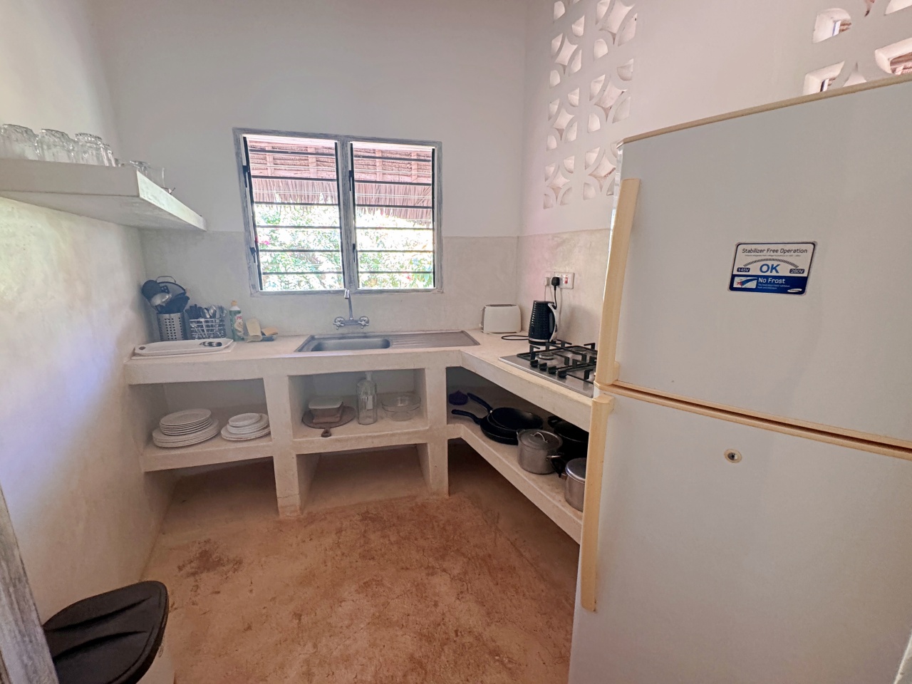 - Water: Well water (slightly brackish); each cottage has its own ceiling water tank